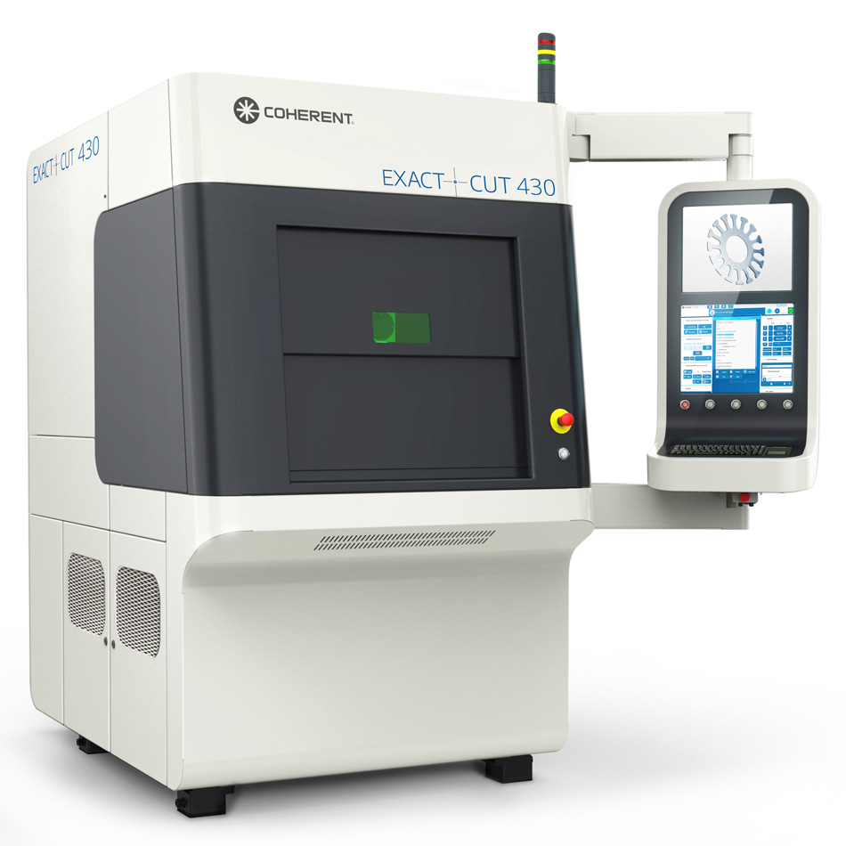 그림 2: Coherent ExactCut 430은 다양한 두께의 금속과 합금은 물론이고 사파이어, 인조 다이아몬드, 세라믹과 같은 취성 재료의 자동 가공을 위한 정밀 레이저 절단 시스템입니다.