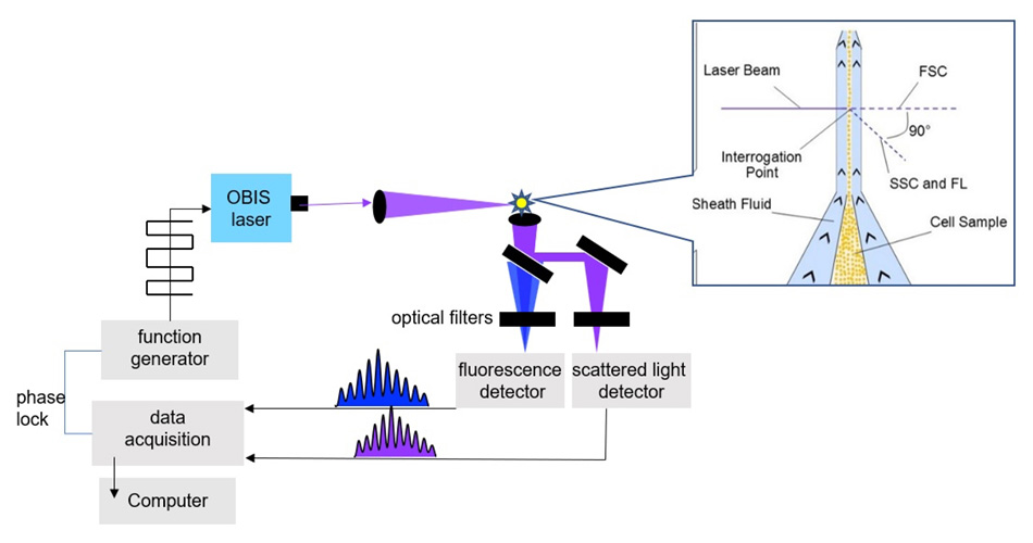 휴스턴 교수는 맞춤 제작된 흐름세포측정기와 증가하는 OBIS 레이저 컬렉션이 성공적인 조합임이 입증되었으며 연구팀의 대사 프로파일링 연구와 FRET 연구를 위한 많은 데이터를 이미 전달했다고 설명했습니다.