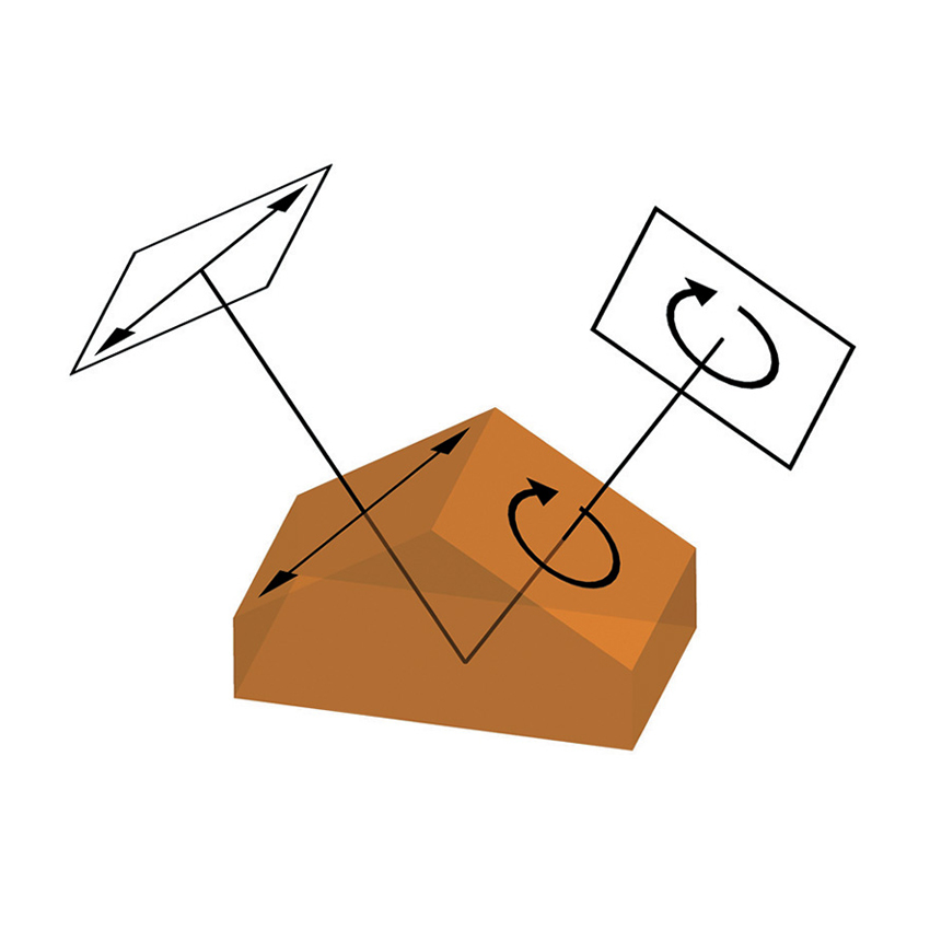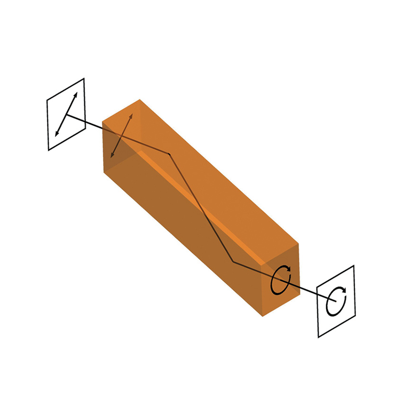 이러한 Fresnel 프리즘과 마름모는 내부 전반사를 사용하여 거의 파장에 독립적인 s-편광과 p-편광 사이의 위상 변화를 생성합니다. 이를 통해 직선 및 각진 구성 요소를 거의 모든 원하는 지연과 함께 사용할 수 있습니다.