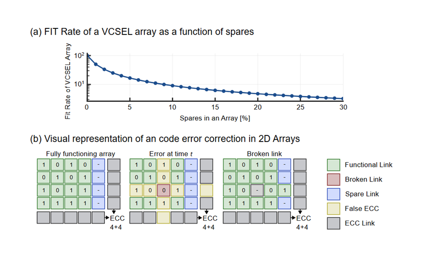 Because each channel operates independently, faults remain localized rather than propagating across shared optical structures. A wide-and-slow approach, spares can be introduced with small overhead. Furthermore, simple Error Code Correction (ECC) can be introduced without noticeable latency or energy overhead.